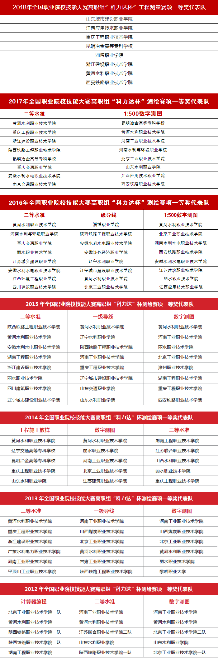 全國職業(yè)技能大賽由31個部委主辦,包括15個大類,分為98個競賽項目,其中全國職業(yè)院校技能大賽高職組測繪競賽(以下簡稱“大賽”)作為其中一個分項,是測繪地理信息職業(yè)教育領(lǐng)域規(guī)格最高、水平最高、參與范圍最廣的一項賽事。自2012年以來,科力達(dá)已經(jīng)連續(xù)四年總冠名并贊助大賽賽項,今年是第五個年頭。